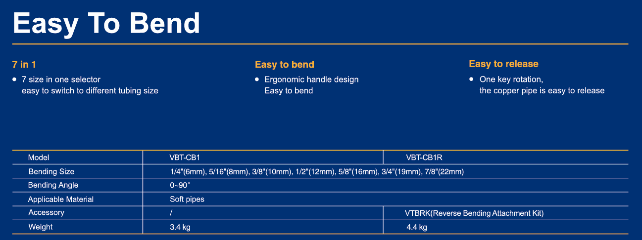 VBT-CB1 عدة يدوية لثني أنابيب النحاس بأقطار مختلفة
